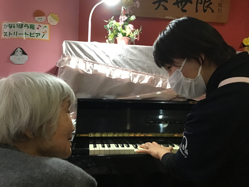 その経験をきっかけに、音大での学びを活かしてかないばら苑のオリジナルソングを作りました。その歌は今でも歌い続けていただいています。自分が作った音楽を、たくさんの人が歌ったり聴いたりしてもらえるのはとても嬉しいですね。