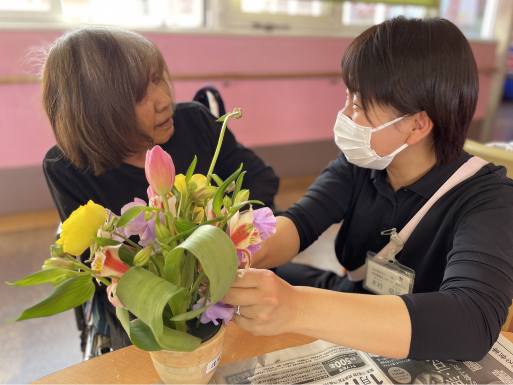 かないばら苑のオリジナルソングの歌詞にもあるように、「優しさに溢れた場所」だと思います。職員同士はもちろん、ご利用者同士の間にも、温かい場面がたくさんあります。